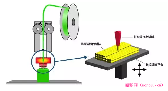 目前陶瓷3D打印成型技術主要可以分為噴墨打印技術(IJP)、熔融沉淀技術(FDM)、分層實體制造技術(LOM)、選擇性激光燒結(jié)技術(SLS) 和立體光固化技術(SLA)等。 使用這些技術打印得到的陶瓷坯體經(jīng)過高溫脫脂和燒結(jié)后便可得到陶瓷部件。根據(jù)成型方法和使用原料的不同,每種打印技術都有自己的優(yōu)缺點,發(fā)展程度也有差距。 1熔融沉積造型(FDM) 熔化沉積造型法由美國學者Scott Crump于1988年研制成功,其以熱塑性絲狀為原料,絲通過可在X-Y方向上移動的液化器熔化后噴頭噴出,根據(jù)所涉及部件的每一層形狀,逐條線、逐個層的堆積出部件。FDM使用的原材料有聚丙烯、丙烯腈-丁二烯鑄造蠟質(zhì)等。