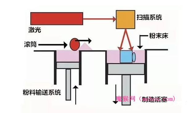 3DP具有能夠大規(guī)模成型出陶瓷部件,成本較低的優(yōu)勢,但也具有黏結(jié)劑黏合強度受限導致部件強度有限,難以得到機械性能優(yōu)良的陶瓷器件的劣勢。 5激光選區(qū)燒結(jié)/熔融(SLS/SLM) SLM 的思想最初由德國Fraunhofer研究所于1995年提出,SLS和SLM原理與三維印刷技術較類似,將粘接劑換為激光束。在高功率比重激光器激光束開始掃描前,水平鋪粉輥先把金屬粉末平鋪到加工室的基板上,然后激光束將按當前層的輪廓信息選擇性地熔化基板上的粉末,加工出當前層的輪廓,然后調(diào)入下一圖層進行加工,如此層層加工,直到整個部件加工完畢。