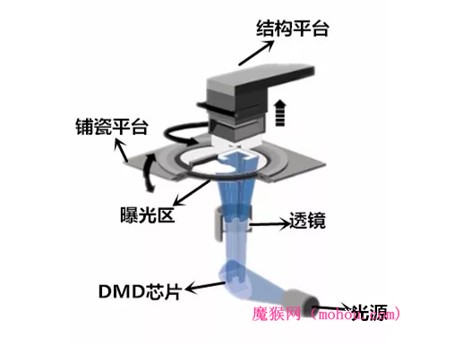 SLS/SLM工藝使用的一般是塑料、蠟、陶瓷、金屬或其復合物的粉末,其具有無需支撐即可制備復雜陶瓷部件的優(yōu)點,但也存在因受到粘接劑鋪設比重的限制導致陶瓷制品致比重不高的問題。 6光固化快速成型技術(SLA) SLA技術是通過激光的掃描曝光實現(xiàn)單層的固化。通過紫外激光束,按照設計好的原件層截面,聚焦到工作槽中的陶瓷光敏樹脂混合液體,逐點固化,由點及線,由線到面。通過xy方向固化成面后,通過升降臺在z軸方向的移動,層層疊加完成三維打印陶瓷部件。