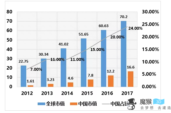 據(jù)知名市場研究公司MARKETS ANDMARKETS(M&M)發(fā)布的一份調(diào)查報告顯示,3D打印陶瓷市場的全球規(guī)模有望從2016年的2780萬美金增長至2021年的1.315億美金,期間的復合年增長率(CAGR)將高達29.6%。