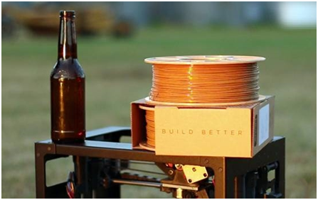 從食物到飲品,啤酒可謂功能多樣。美國纖維生產(chǎn)商3Dom,因其基于咖啡和麻的生物材料而著稱。最近他們研發(fā)了一種用啤酒制成的長(zhǎng)纖維。急速運(yùn)行的長(zhǎng)纖維有啤酒的天然色彩,主要原料是PLA和啤酒釀造過程中產(chǎn)生的廢渣。3D-Fuel上售賣的500g/卷長(zhǎng)纖維價(jià)格為39.99美元(約32英鎊)?,F(xiàn)在你能用啤酒來制作啤酒杯,這多么不可思議!
